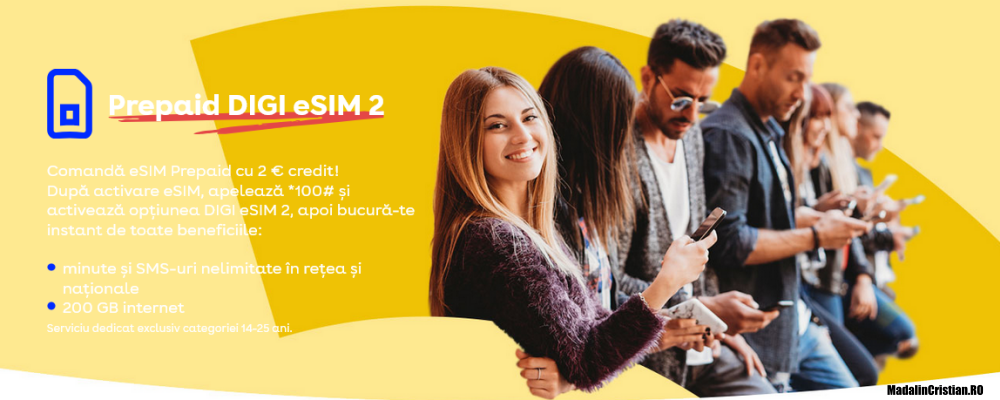 - după activarea eSIM-ului, este necesar să activaţi opțiunea Prepaid DIGI eSIM 2, apelând *100# pentru a putea beneficia de toate resursele disponibile.
