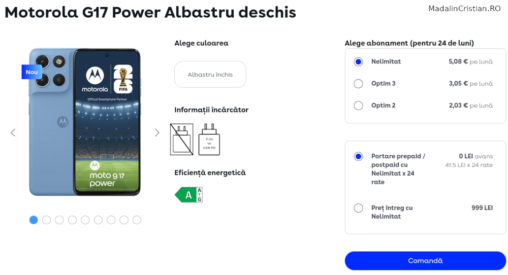 Motorola G17 Power vine cu Dual 4G și procesor Mediatek Helio G81.